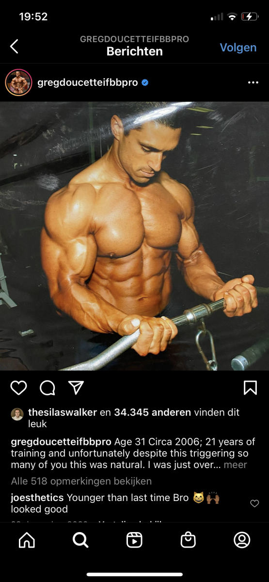 Beetje off-topic maar in deze foto claimt Greg natty. Al zou hij hier op z’n eigen foto een natty or not maken weet ik de uitslag al ..Coach Greg was natural beter dan enhanced. Zal wel weer genetics zijn.