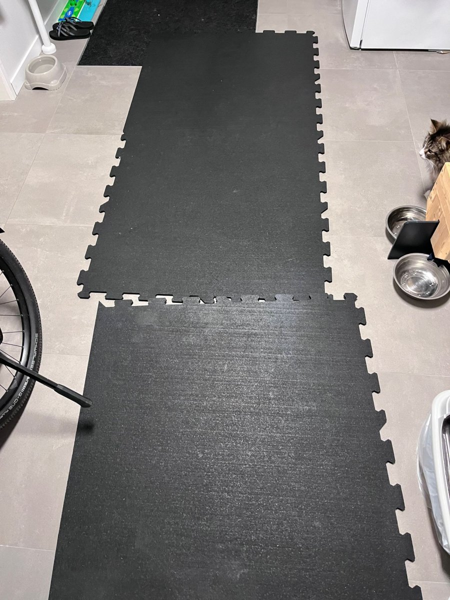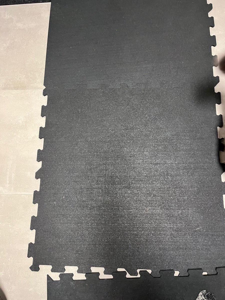 6x 1m2 tegels 1 cm dik. Zware rubber van erg goede kwaliteit. Vloer komt van Fitness seller af.