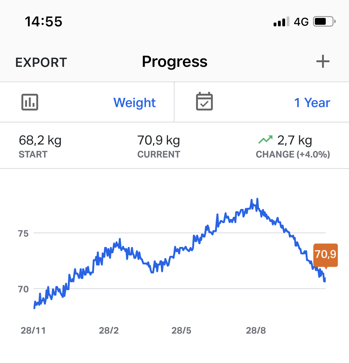 +4 op de laatste set is nog steeds een 2% increase, ik laat hem mooi staan