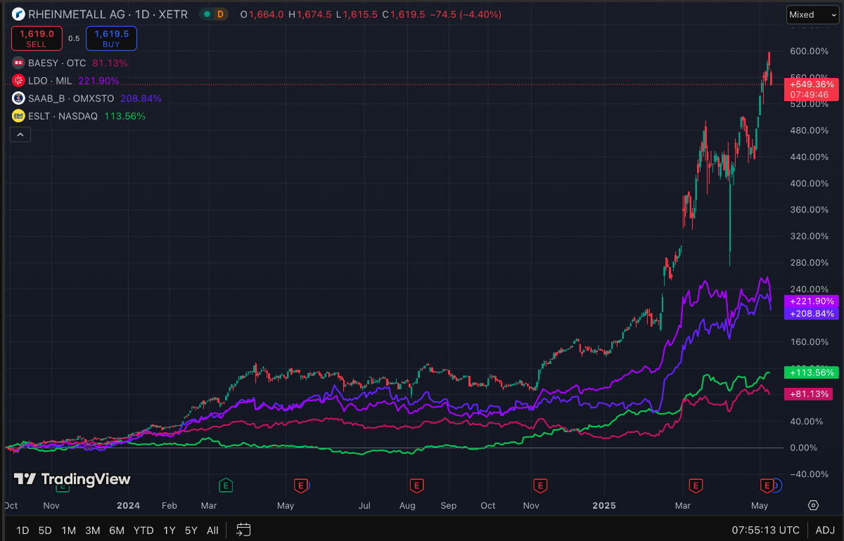 Nee die is niet met een paar honderd procent gestegen, alleen als je kijkt naar wat de NATO wil en RHM daarvan één van de grootste is?Ik probeer het vaak zo te bekijken om er een “eerlijk gevoel” bij te hebben.