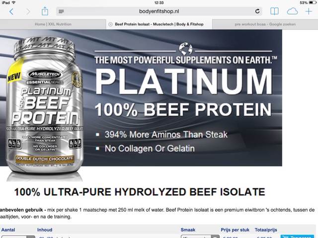 B&F claimde ook de beste sensationeelste whey van de EU te hebben, naïeve pummelHeb ik idd van gehoord, maar muscletech claimt, CLAIMT dit allemaal niet te hebben. Wel geloof ik dat de protein niet uit biefstuk komt maar uit iets anders en dan de exacte amino's enz hebben tiegevoegd zodat het net geconcentreerde beef is. Dit boeit mij niet.