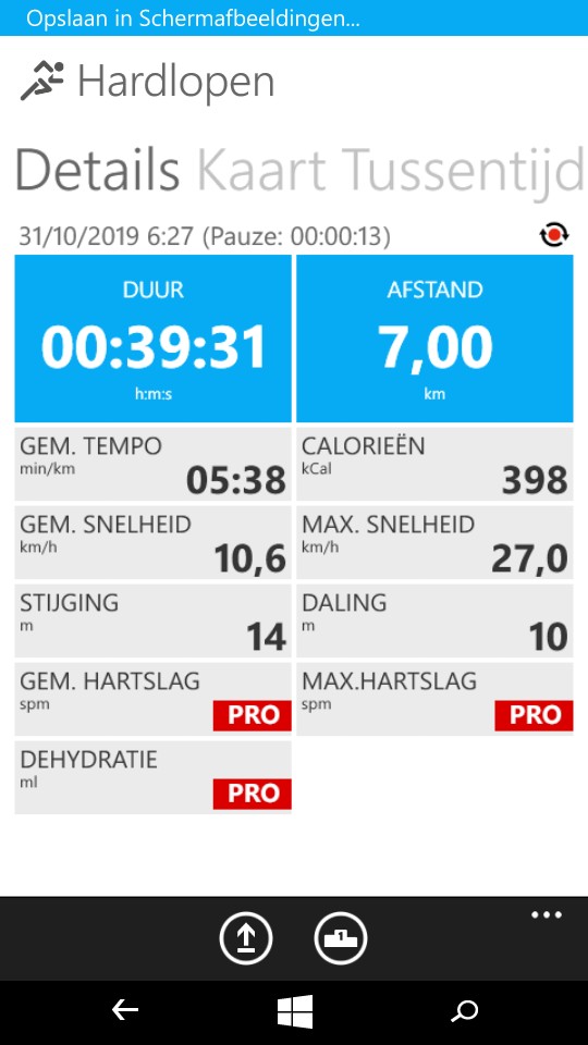 Cijfertjes: 39'; 7km; 10,6km/h; 400kcal