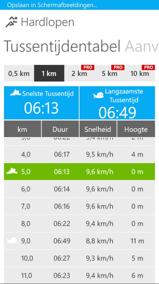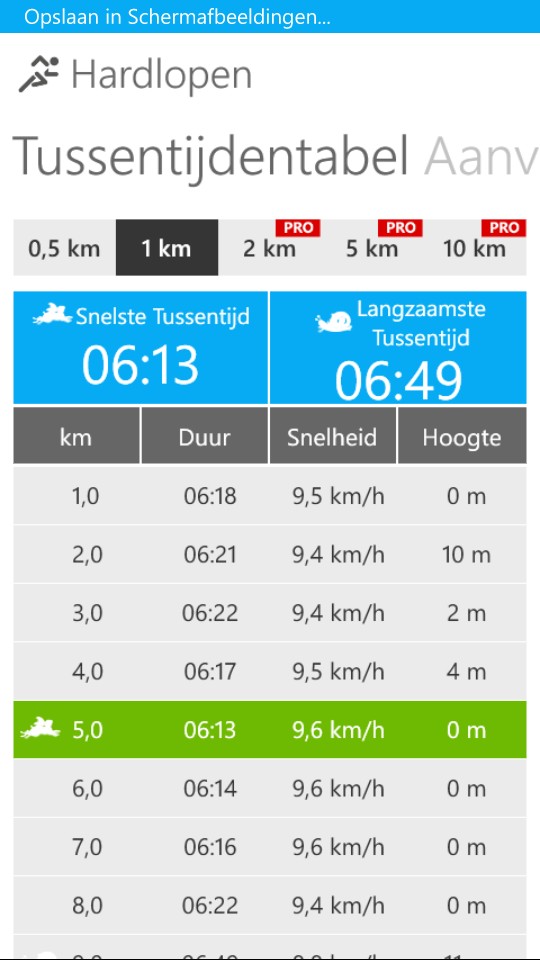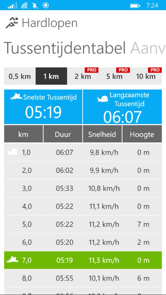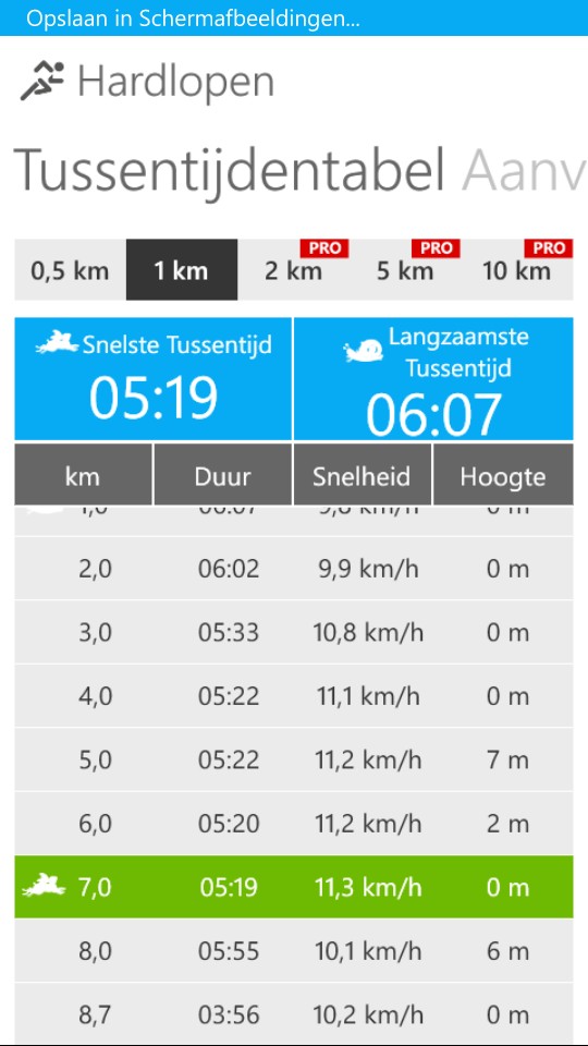 Snelheid was relatief stabiel, op een km na (een stuk dat lang omhoog gaat, om mijn hartslag stabiel te houden moest ik wat gas lossen).