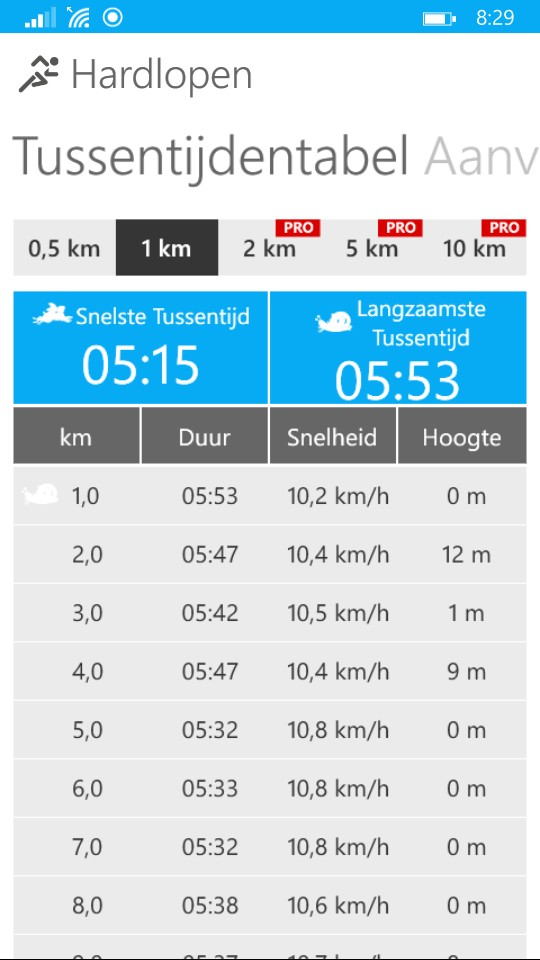 Dan kan ik elke 4km beslissen of ik nog doorga of niet...