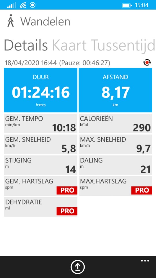 Gisteravond nog een kleine 5km gewandeld, rustig aan (5,7km/h).