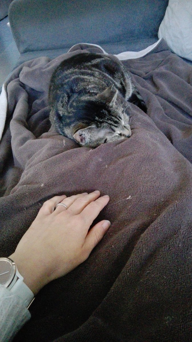 ?je straalt veel rust uit en katten voelen dat, die kijken in je zielHaar vrouwjte onder een dekentje, onweerstaanbaar voor katjes