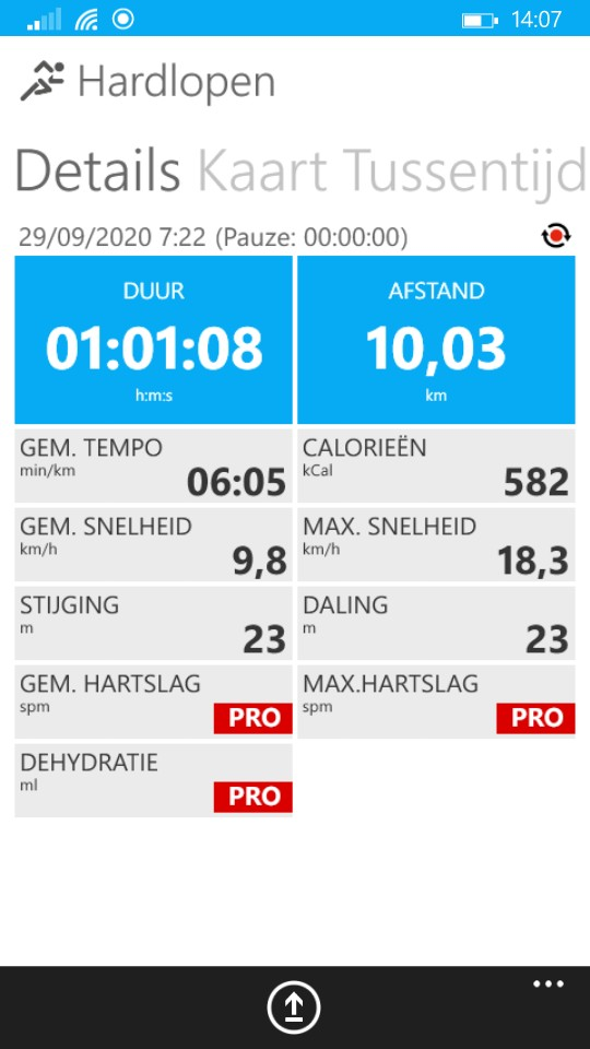 - Hardlopen: 1h01'; 10km; 9,8km/h; ~600ckal; AVG HR 157bpm