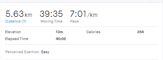 Cijfertjes: 35'; 6,1km; 10,3km/h (5'48"/km); ~375kcal; AVG HR 144bpm