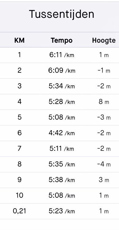 En dit zijn slechts de tijden op de training, dit lijkt heel goed te gaan!Hardlopen: HM-schema W10D2 (Tempoloop 60')