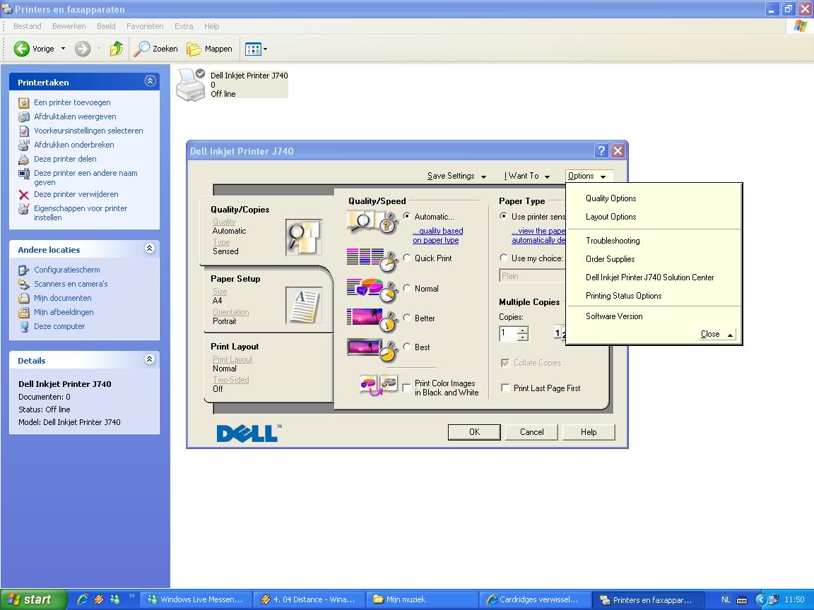 Nu heb ik de nieuwe cardridges erin zitten maar ik wil wat van die test prints ter configuratie maken. (je weet wel met van die blokjes/streepjes) en kleuren etc.