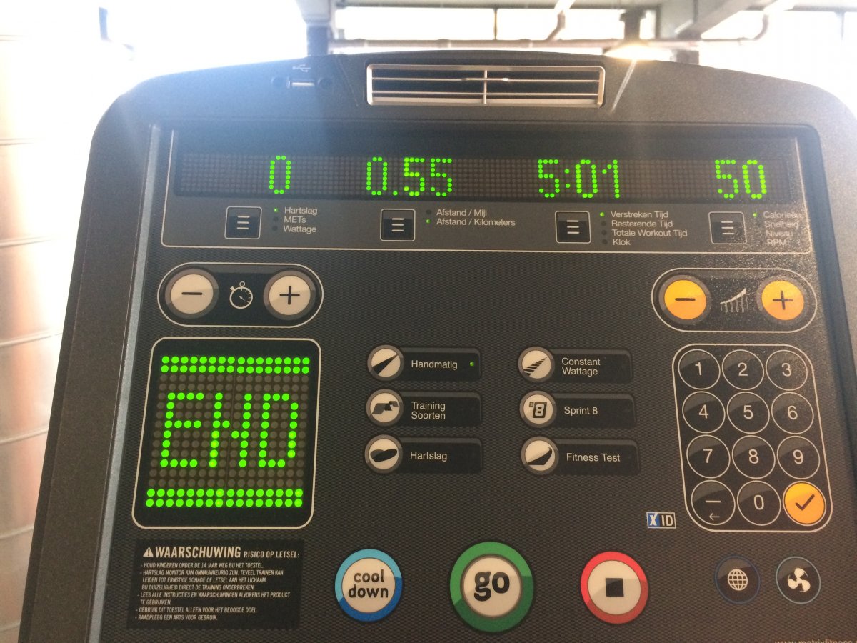 5 minuten op de crosstrainer, helemaal fullout gegaan, 5 minuten
