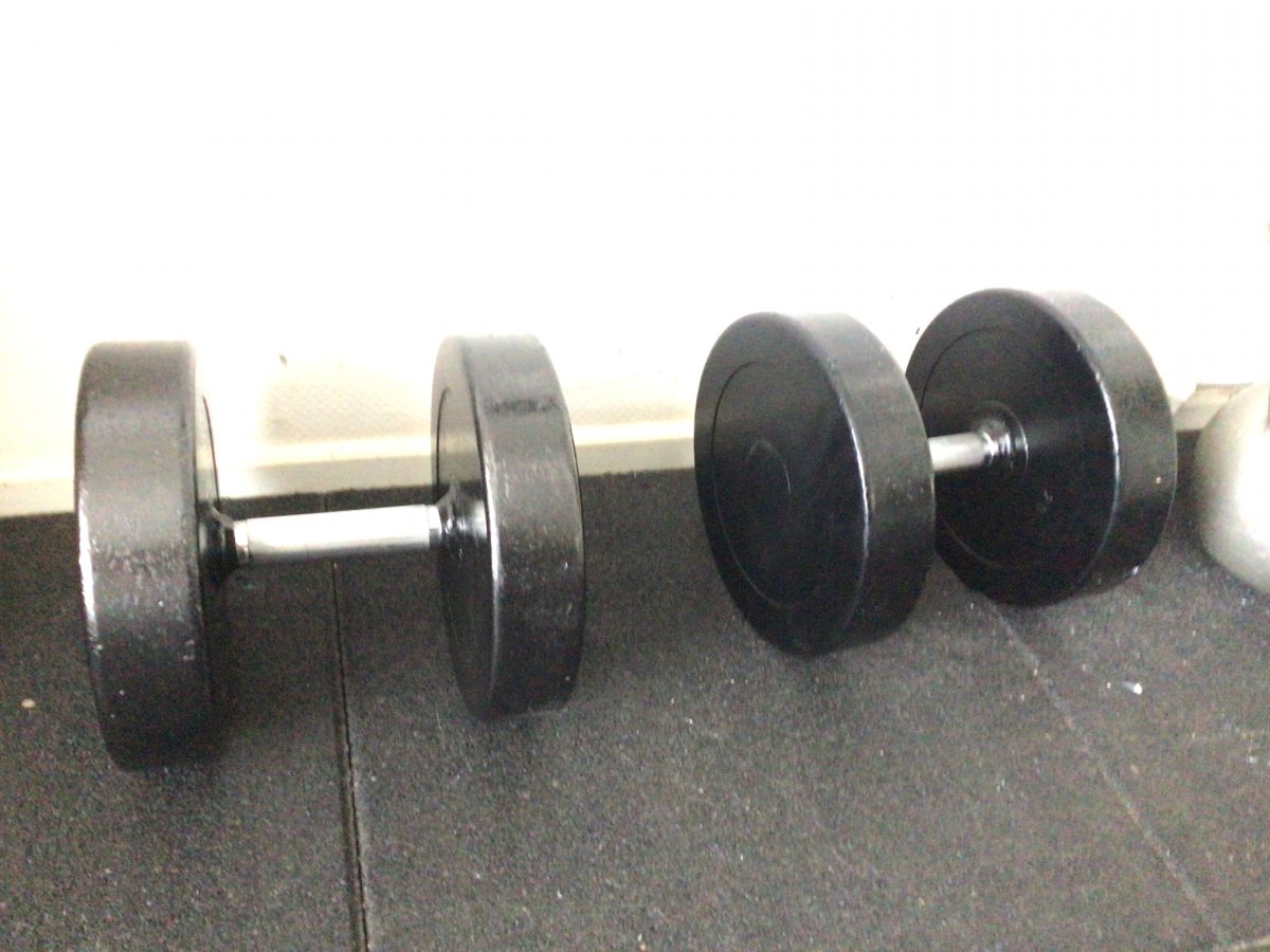 Ondertussen ook begonnen aan vaste dumbells te lassen, setje van 42 is klaar en goed gelukt (stalen schijven van 20kg , die van 52 gaan moeilijker worden (moet met een rondel gelast op stang, schijven zijn van gietijzer)