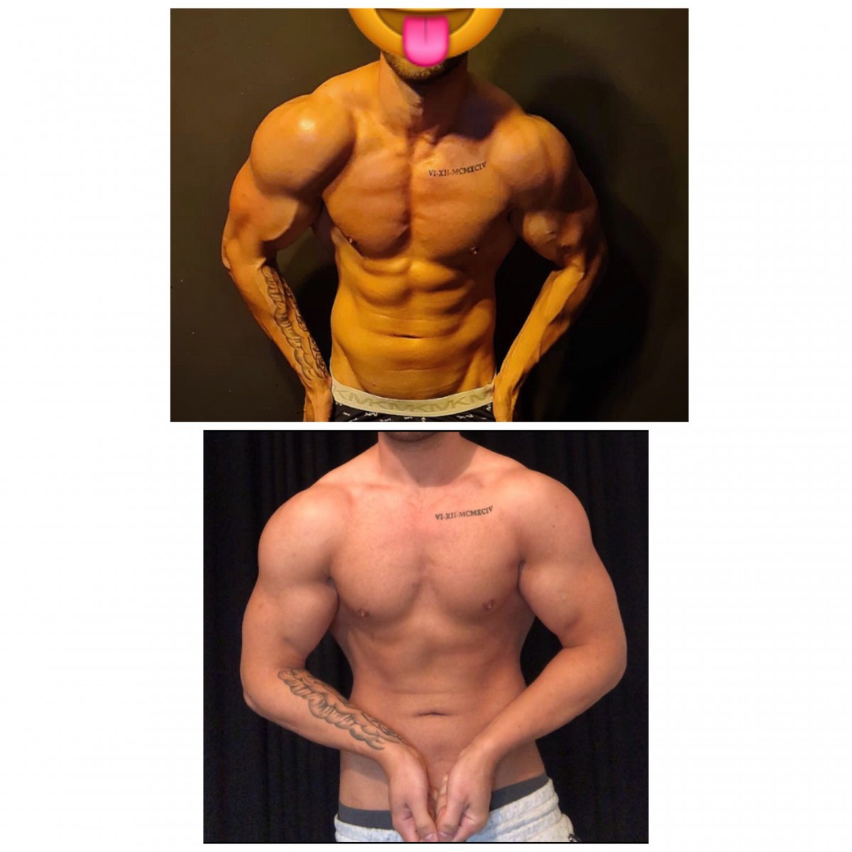 Ik vind het toch ook wel leuk om hier het eindresultaat van m'n cut nog even te plaatsen. Ik ben in maart begonnen met diëten na jaren als een couch potato geleefd te hebben. Ik ben thuis met dumbells van 2,5 kilo en een zak speelzand van 25kg in de weer gegaan. Sinds de sportscholen weer open zijn, ben ik lid geworden en dus ben ik nu zo'n twee maanden fatsoenlijk aan het trainen. Ik heb van 2003-2005 redelijk fanatiek getraind, dus gelukkig was er nog wel wat muscle memory aanwezig. Uiteindelijk is dit het resultaat van een half jaar hard werken: