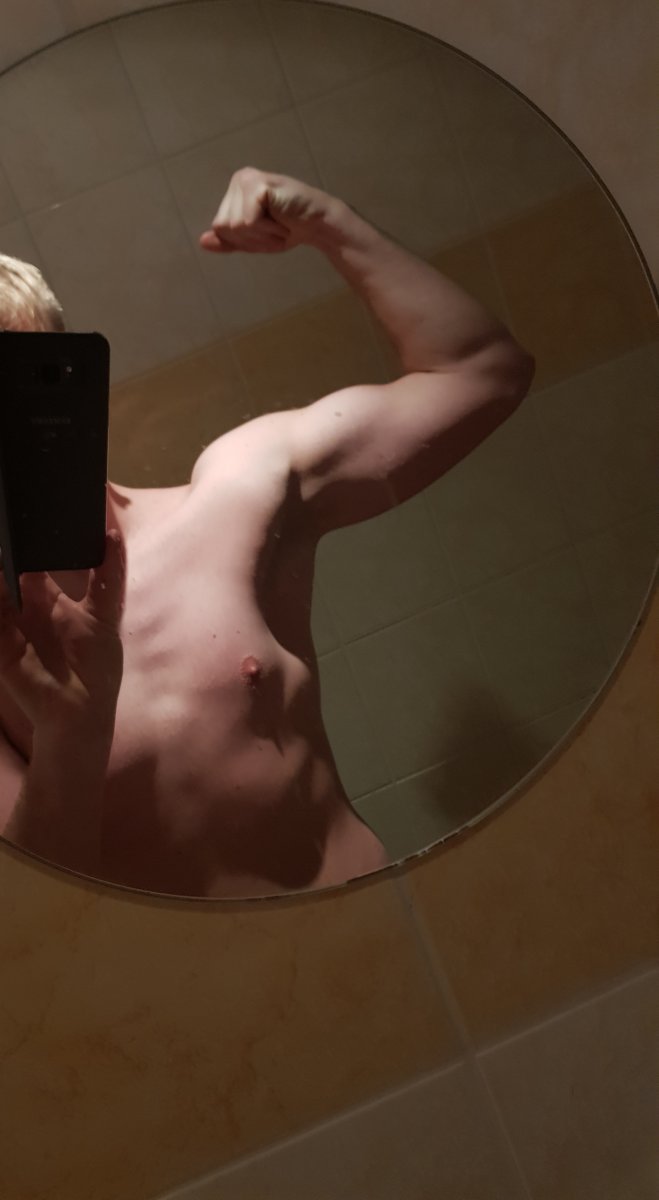 Je begint er wel vaak zelf over.......Zonder pomp en lekker plat en depleted .. Typisch anabolen fysiek![]()