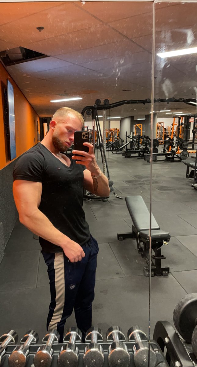 Chronisch slaaptekort. Kleine 40cm nog maarGoeie bicep vorm, je ziet er wel een beetje moe uit. Enig idee hoe groot je arm is?