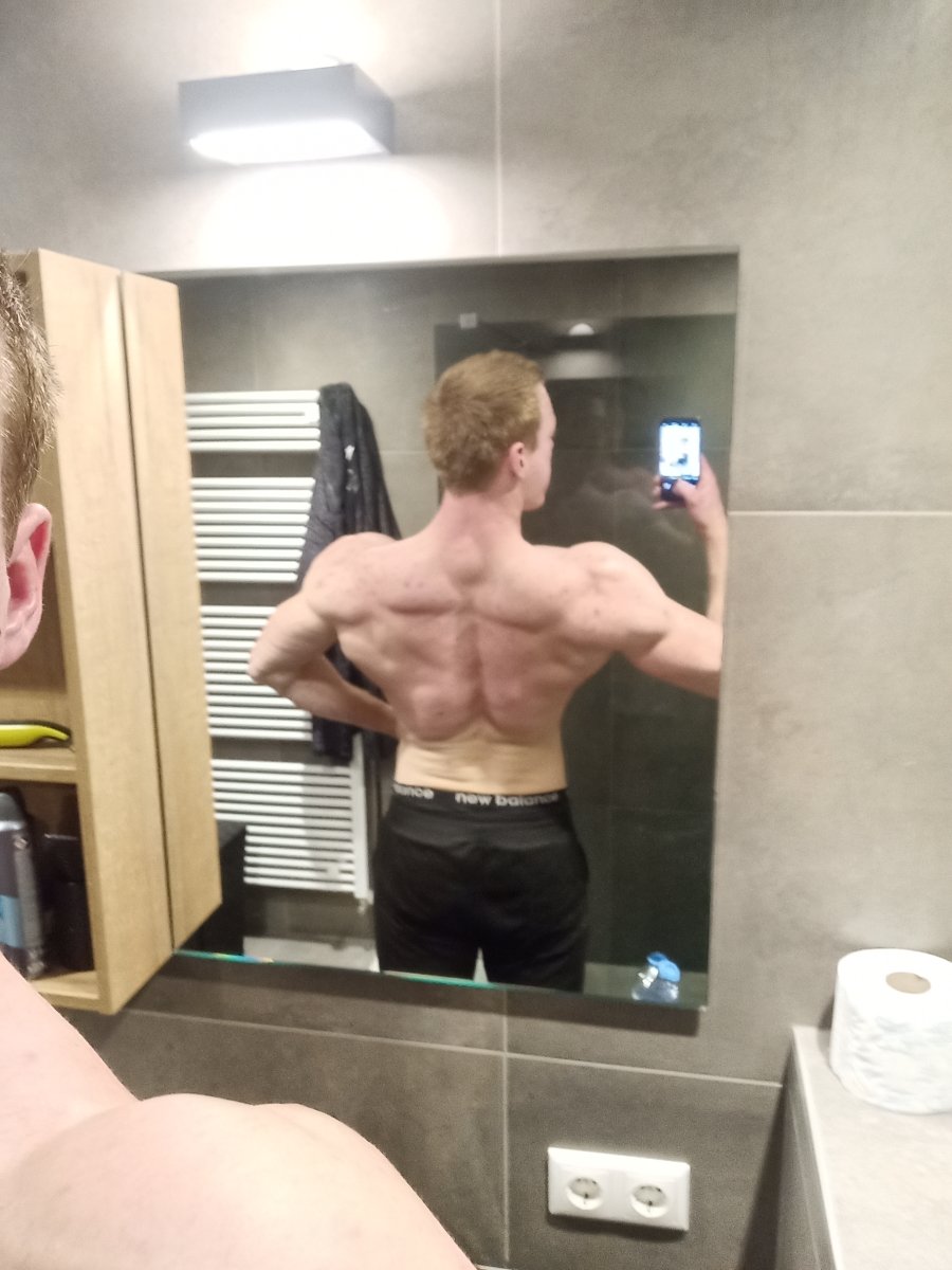 Jij bent freaky gespierd, de beste bodybuilders uit mijn actieve tijd waren niet veel beter.