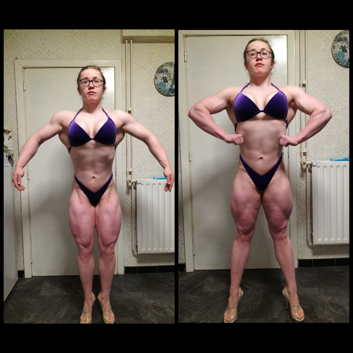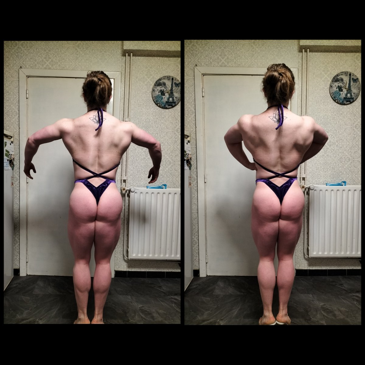 Bedoel je meer zoals onderstaande foto, want ik doe idd me heup naar voren zoals links en me kont doe ik eigenlijk niks mee. Op de rechter duw ik me kont naar achter, maar voelt het meer als een “bolling” die ik maak met me UB.En probeer met poseren je kont naar achteren te duwen ipv heupen naar voren. Dan oogt je achterkant lb 2x groter.