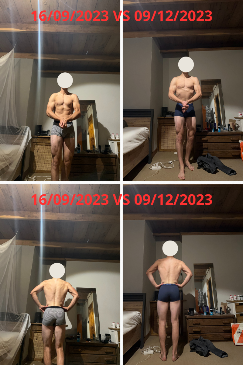 beide 76kg +/-. tot midden oktober nog door gecut tot 74kg ish. daarna bulk gestart en nu ook weer 76kg ongeveer.