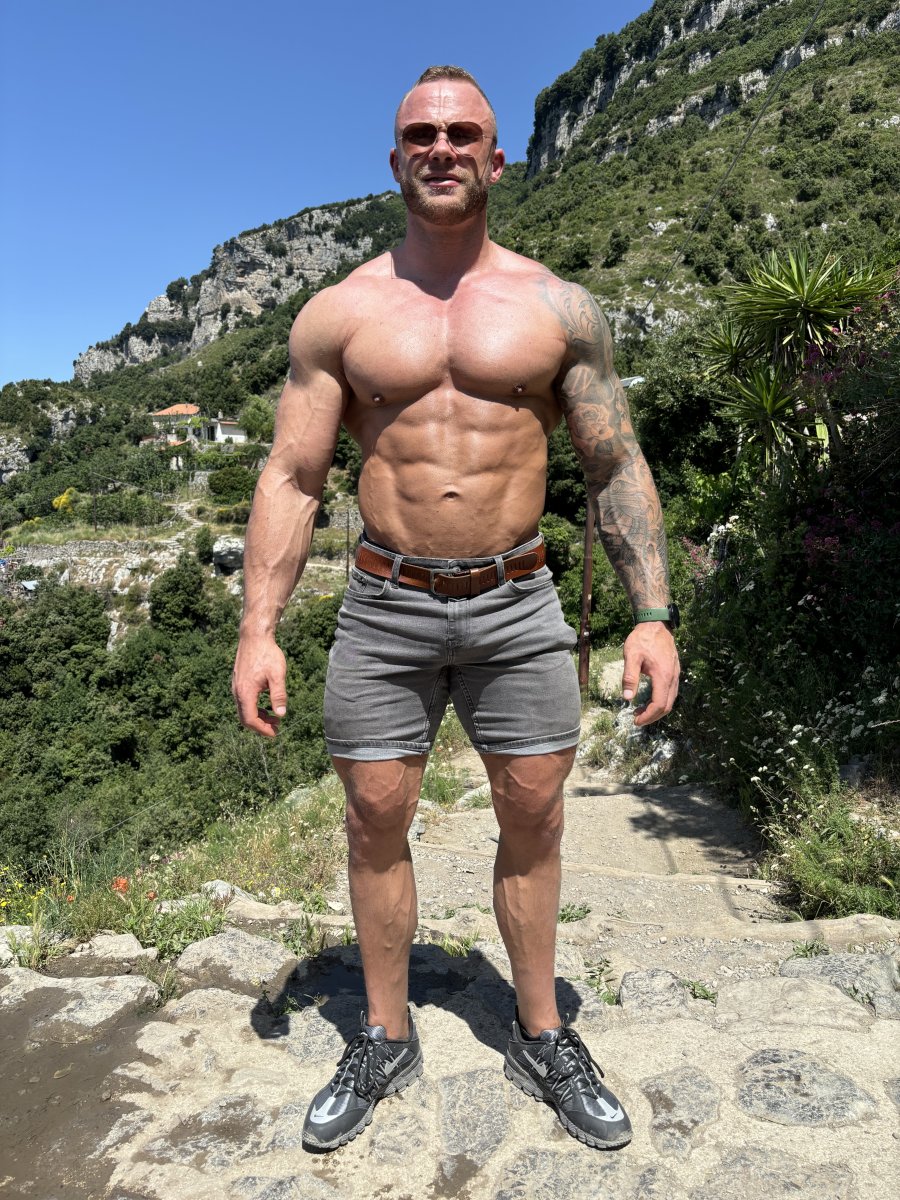 Mooi fysiek man! Geniet van de vakantie1e dag vakantie. 4 uur door de bergen gewandeld. Nu een pizza verdient.