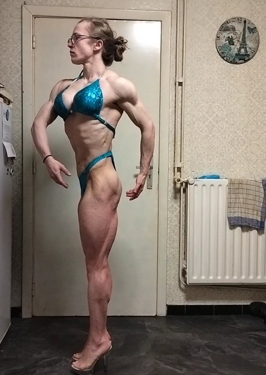 Vind de doorkijk tussen armen/lats mooier als dat dicht is, maar op advies kon ik beter deze houding aannemen zodat het breder oogt. Sta nu ook iets “rechter” ipv bovenlichaam naar achter.