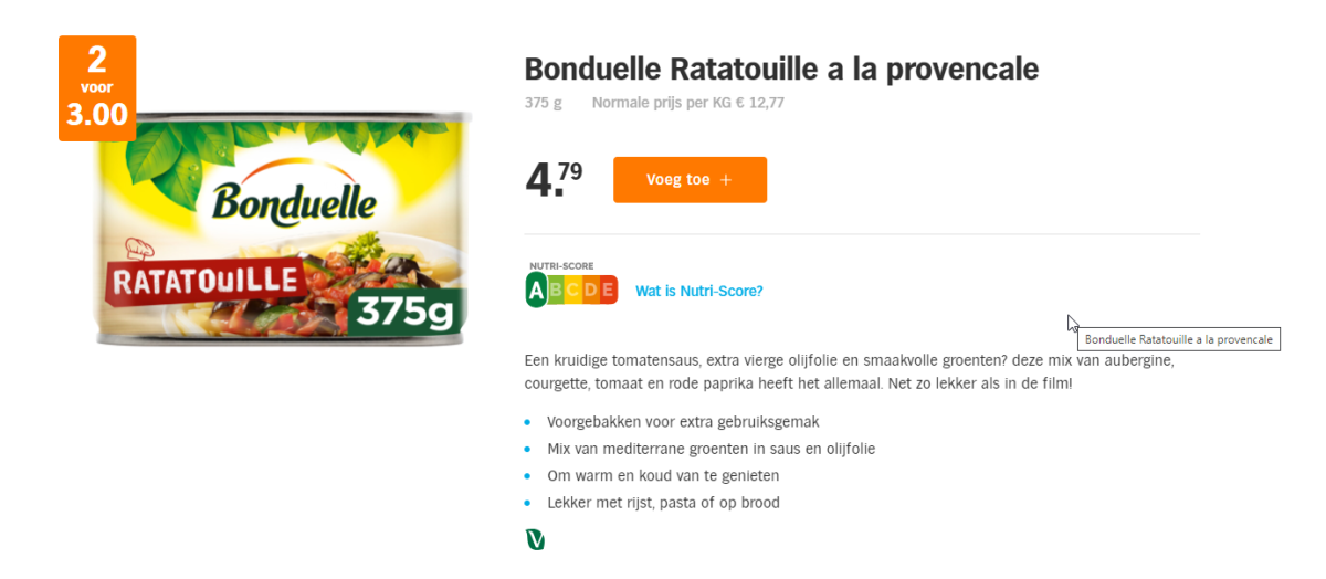Nog niet eens, veel gewicht is tomatensaus4.79 voor 375 gram groente
