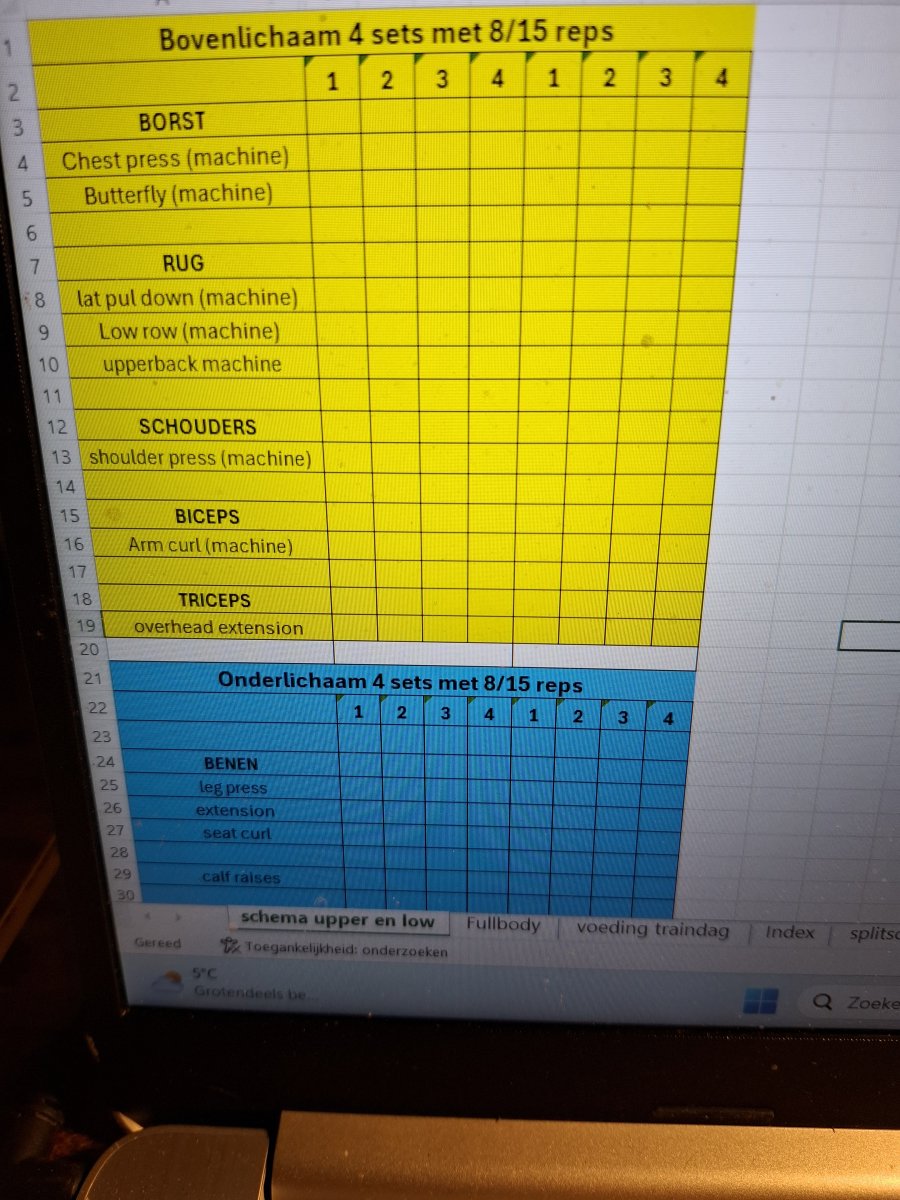 de reden van een split schema voor mij is dat ik nu 3 sets van max 8reps doe tot uitputting toe maar wil graag iets lichter gaan en dan 4 sets met rond de 10/12 reps. Ik wil wat meer pomp opzoeken.