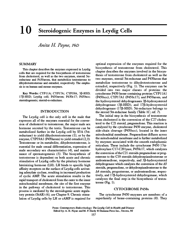Cell biology of Leydig cells in the testis.