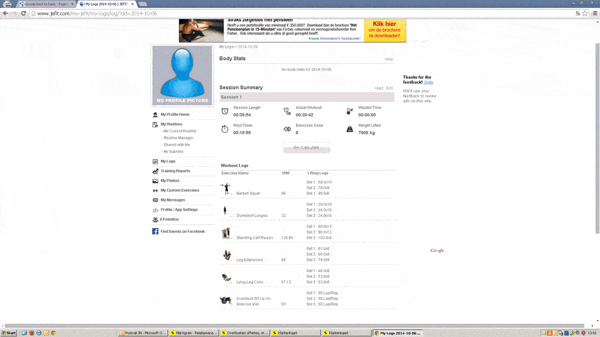 Moet ook zeggen dat het trainen met de app goed bevalt, bij het starten van de oefening geeft de app aan wat je de vorige keer gedaan hebt en zo weet je in ieder geval wat je kunt en pak je zo eerder een paar reps meer of gooi je er iets gewicht bij. Zo kruip ik toch weer beetje bij beetje omhoog, het motiveert mij in ieder geval wel