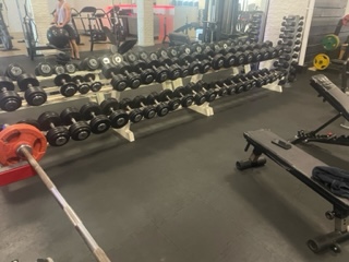 Dumbells tot 40kg (er mist 2x14 kg en eentje van 22kg) incl. opbergrek