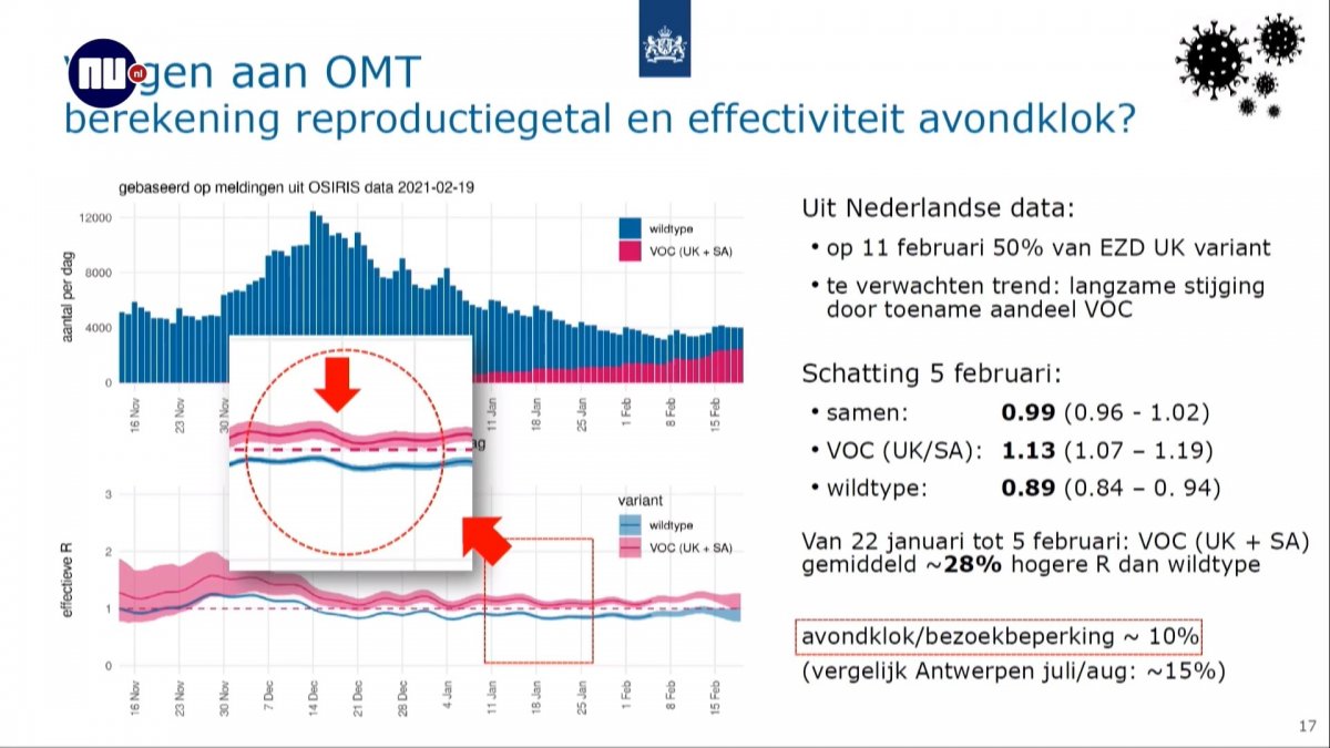 Geen idee. Volgens van Dissel is dit het effect van maatregelen. In de rechterkolom staat een pijl, dat zou overeen komen met de avondklok. Alles daaronder heeft minder effect.Welke maatregel staat er 1 mei gepland? Dat ze weten dat het dan weer zal afnemen..