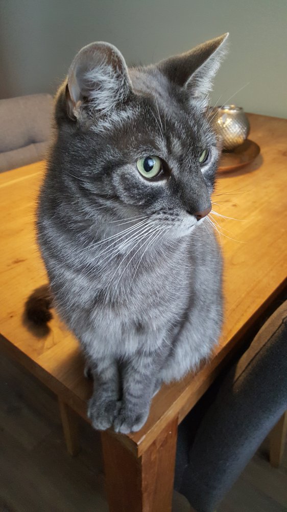 Hij zat op zolder te klaag miauwen en ik vond hem kwijlend in de badkamer. Hij bedaarde nog wel, dus heb hem af en toe gecontroleerd, was om 12 uur 's nachts. De volgende dag naar de dieremarts en die vond een gezwel zo groot als de hele maag. Met prednison heeft hij zich nog anderhalve week goed gevoeld, maar we zagen dat het minder ging. Hij bleek 700 gram afgevallen in de tussentijd en we hebben hem in laten slapen voor hij pijn zou hebben. 13 jaar is hij geworden.