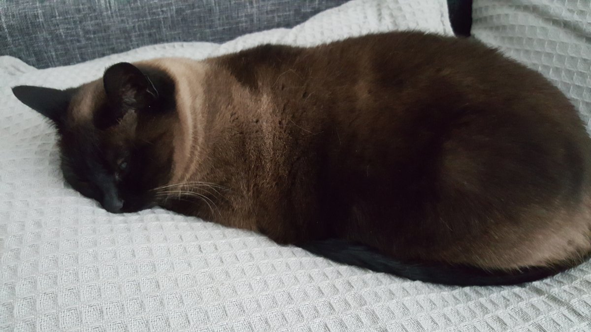 ahhh . Was hij ziek?Moshi de avond voor we hem in hebben moeten laten slapen. Hij bleef de hele avond dicht bij me. Hier was hij even de aandacht verloren terwijl hij op mijn eendenborstfilet aasde. Daarna heeft hij nog op schoot geleden samen film kijken.