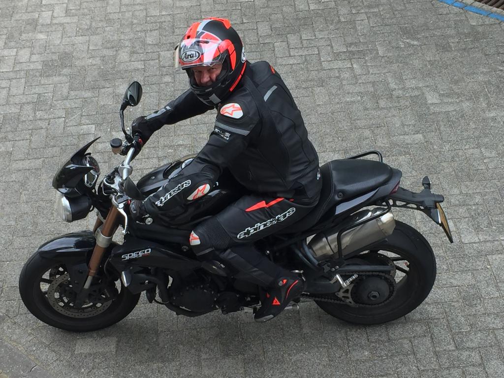 Ik deed daar veel aan fietsen en woog maar 98kg; 4XL, zit krap. Vroeger liet ik mijn motorpakken op maat maken, maar toen zaten ze nog niet goed.