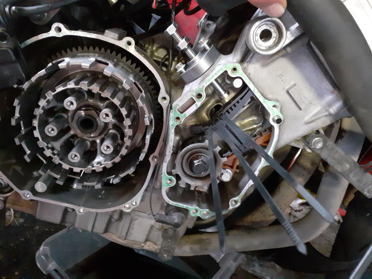 Enkel een nieuwe ketting en dan istie helemaal klaar. Heb er een handmatig verstelbare NAKS ingeknald, nieuwe koppeling incl tussenplaten en 10% sterkere drukveren en nieuwe dynamo en spanningsregelaar.