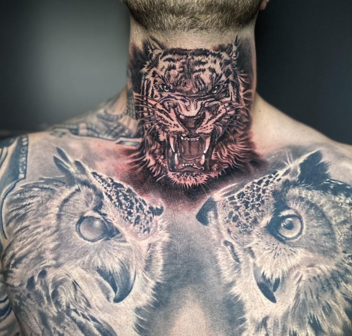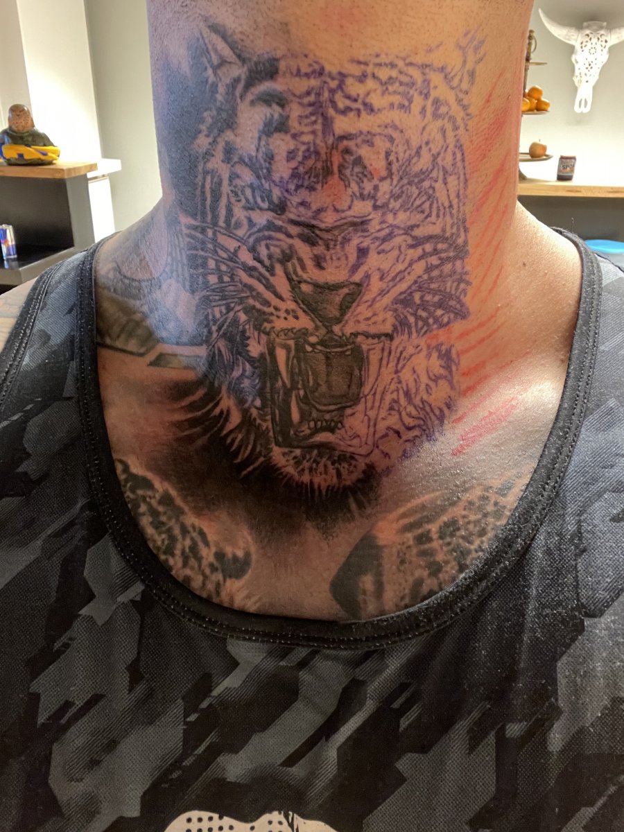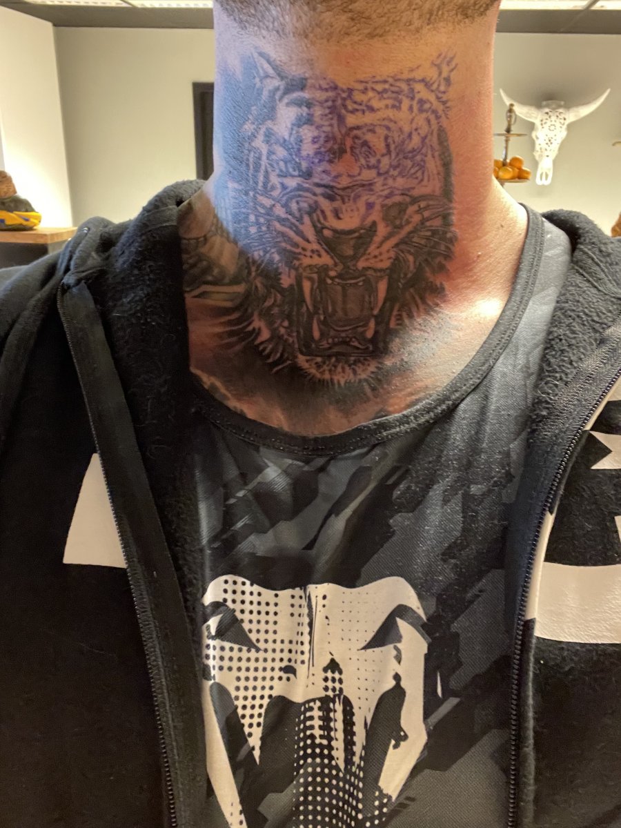 Elke keer is het weer een verrassing hoe zo’n dag gaat. Het wordt ook nooit minder spannend.Kan het me niet voorstellen dat je zoveel uur in zo’n stoel ligt, of dat je zoveel uur (natuurlijk met pauzes maar toch) echt gefocust gaat tatoeëren, zou voor de tatoeage zetter ook niet makkelijk geweest zijn, dat is allemaal precisiewerk.