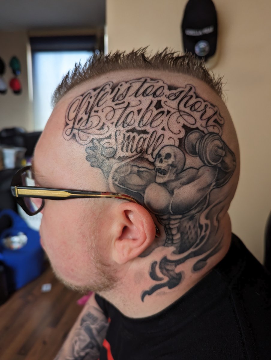 Je ziet de inkt nog op de armen buiten de tattoo en op het keukenpapier, waarschijnlijk een foto in de shop en dan zwart wit gemaakt of misschien zelfs hoger contrast. Doen ze vaak. Die zwarte bomen links worden volgens mij met de jaren toch echt een inktklont. Maar je kan op termijn nog en mooi blackout project van je armen maken.Het ziet er uit of het net gezet is maar dan zou de huid ook wat verkleurd moeten zijn