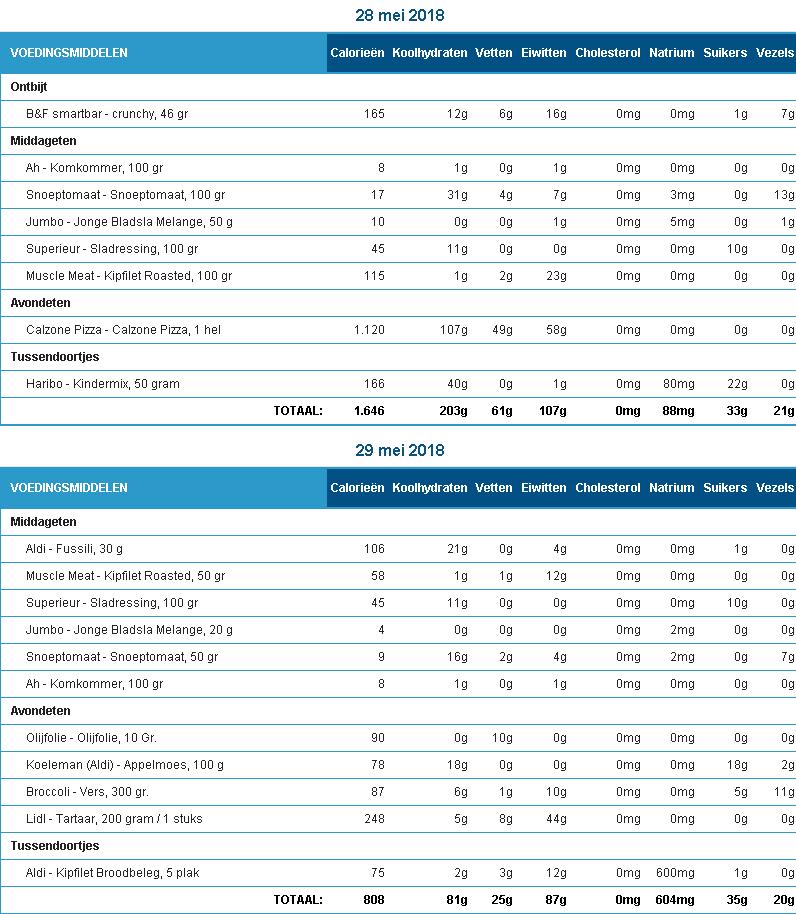 En maar uitgekomen op zo'n 1600kcal,, not bad!