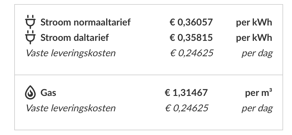 kreeg van overbuurman pas weer zijn tarieven van Essent per 01 jan, en dat zit strak op huidige prijsplafond. 0,389 elektra en 1,449 gas