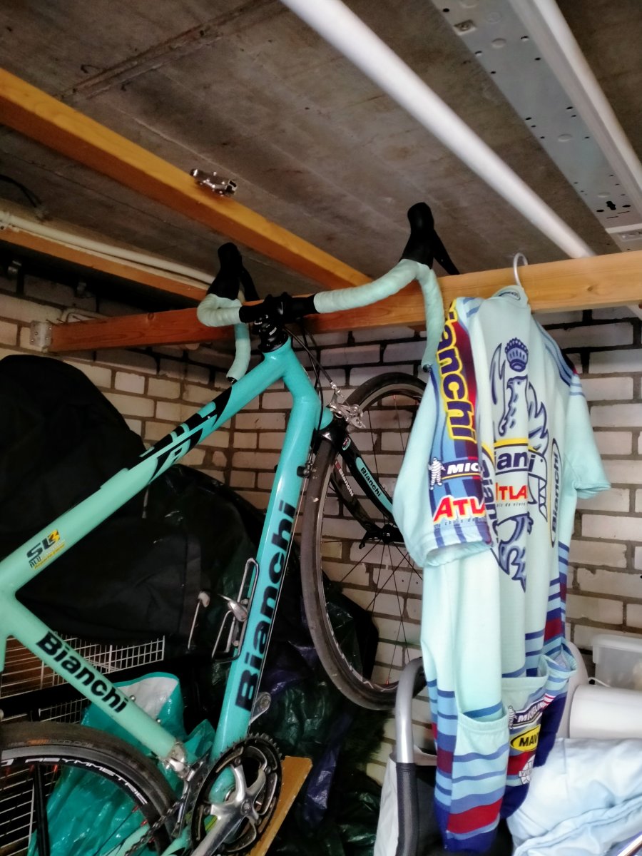 Aantal dingen opgemerkt die beter kunnen qua materiaal: schoenplaatjes meer naar achter zetten en langere voorbouw monteren. Dat soort zaken merk je pas als je een tijd niet hebt gefietst.Anderhalf uur gefietst, voor het eerst sinds bijna een jaar weer ingeklikt dus met hoge cadans flink doorgetrapt. Werd halverwege ingehaald door een vrij goede vrouwelijke wielrenner, meter of drie erachter blijven hangen om te kijken hoe ze het deed. Mijn techniek was echter beter en na een km of 10 ging ik er maar met klein snelheidsverschil langs. Ze kon niet volgen. Was toch te overmoedig geweest, want nog even verder bleek ik er flink doorheen te zitten. Maar toen was ik weer thuis.