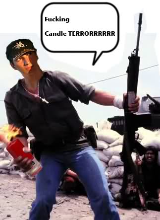 Dat zal hem leren om met kaarsen te gooien