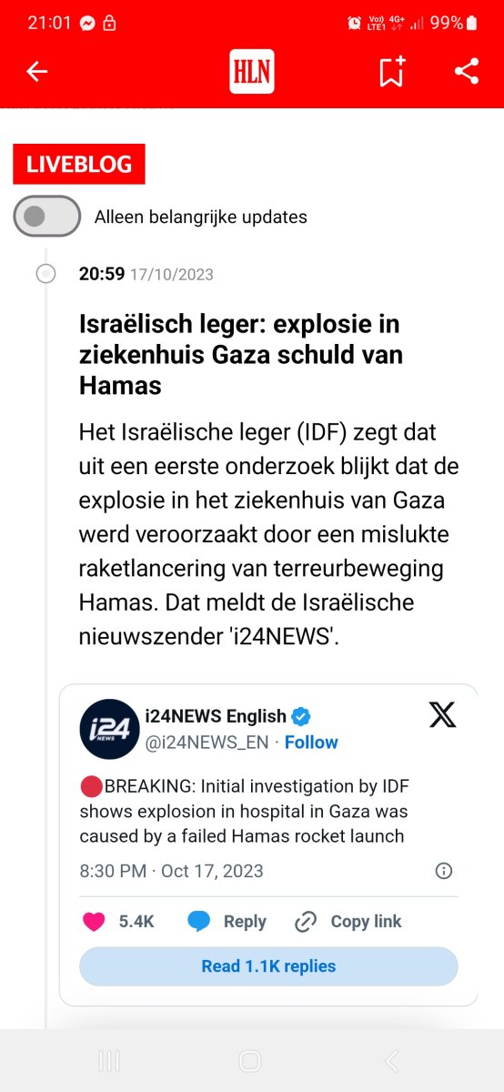 De parels van de NL journalistiek, u weet wel de NPO en de Vlaamse kranten die pas op maandag ofzo konden berichten over de aanslagen, die waren er als de kippen bij om een ontploffing bij een ziekenhuis in Gaza aan Israël toe te schrijven.