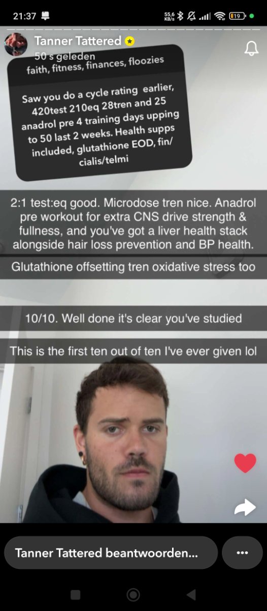 Zou ook niet per se gelijk die telmisartan starten, maar sowieso handig om bij de hand teh bben voor momenten dat het dus toch richting 135/85 gaatZou niks voor de bloeddruk nemen 120/67 is super mooi en je wil ook niet in eens een te lage bloeddruk krijgen. Een keer wat hoger maakt niet uit dat hoort zo en kan al door de gedachten komen omdat je er zo mee bezig bent of na een rot dag. Wat denk je wat de bloeddruk kan worden tijden zware squat haha, 360+ is dan niet niet raar.
