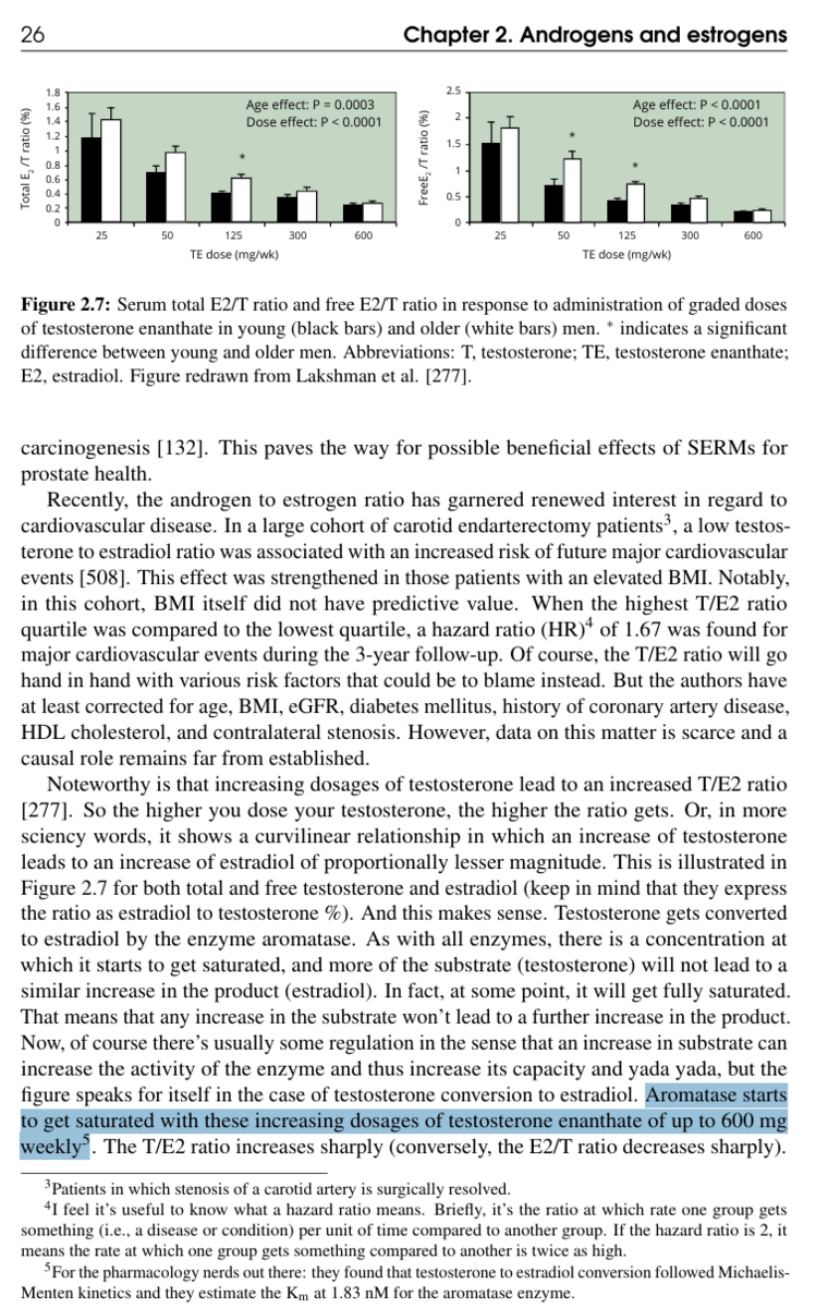Interessante uiteenzetting waarom je beter geen AI's gebruikt bij Testosteron gebruik. Beter is het om "the root cause" te behandelen. Dit is uiteindelijk het metabool syndroom, insuline, visceraal vet enz. Hier wordt saturatie punten van Oestrogeen en DHT besproken, Michaelis-Menten kinetics en waarom je misschien beter Metformin gebruikt om side effects te voorkomen.