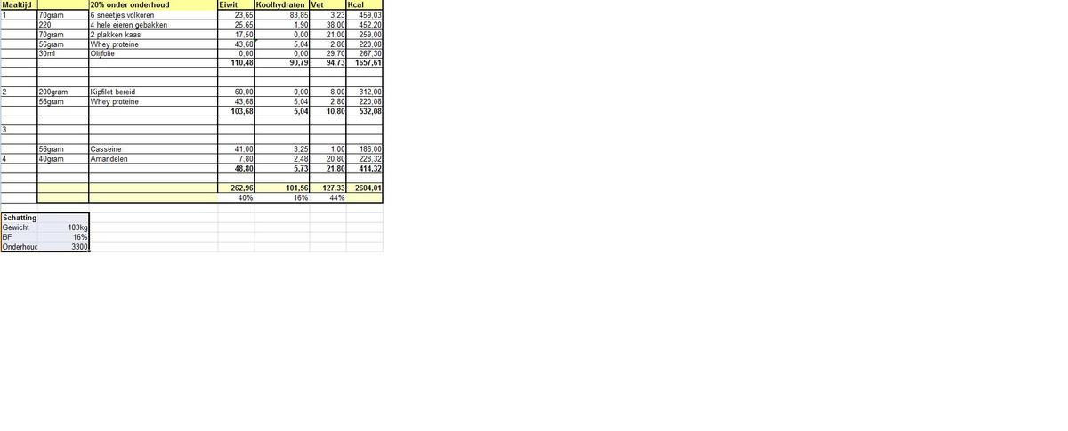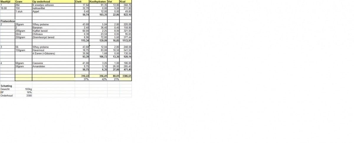Mijn voedingsschemastaat niet op volgorde. Maar mijn dagelijkse voeding is verdeeld over 5 maaltijden.