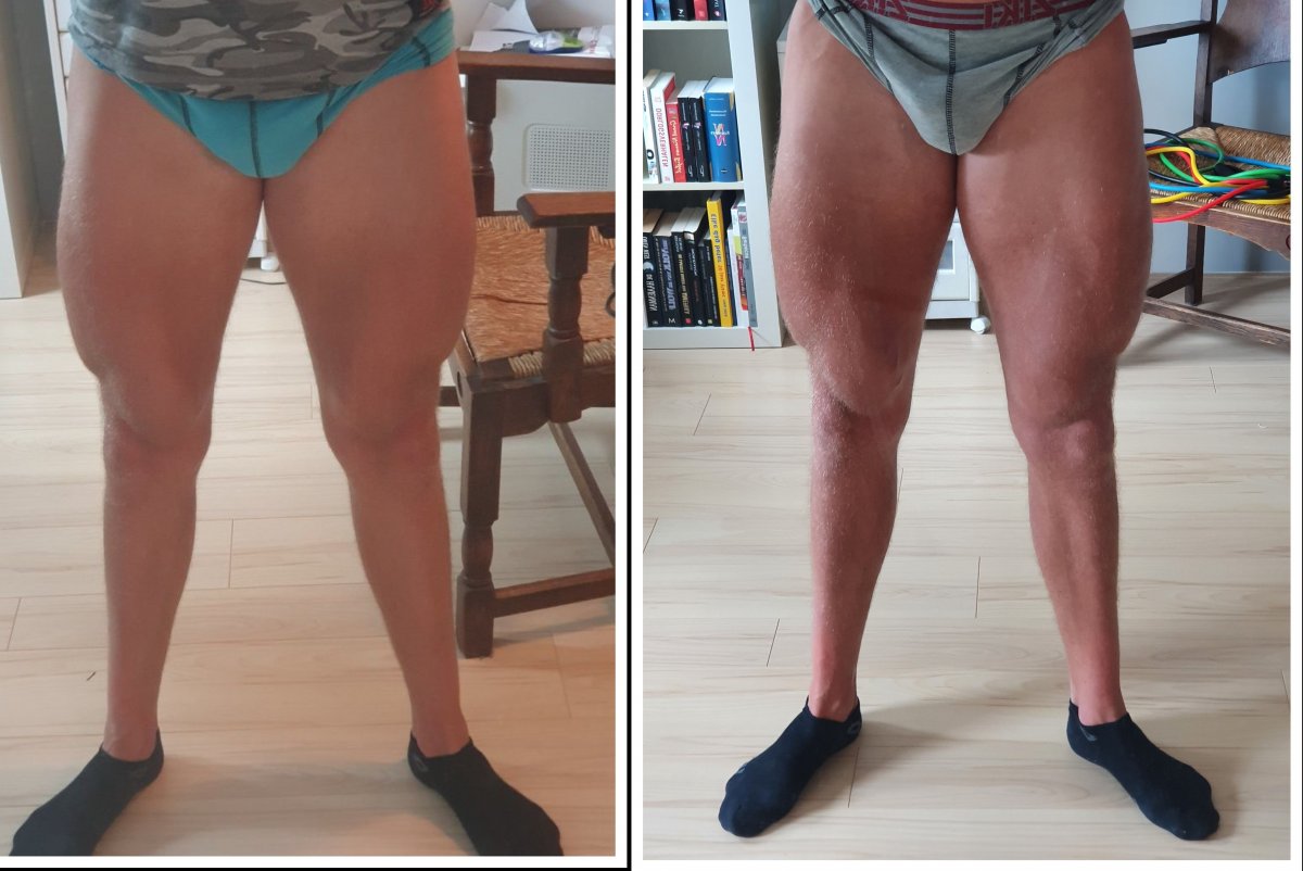 Overall zeer tevreden met de progressie. Quads zijn helaas niet heel erg meegegroeid terwijl mijn squat wel flink vooruit is gegaan. Kuiten lijken zowaar ook iets gegroeid te zijn, al is dat op de foto's amper te zien Voor de volgende blast wil ik iets anders gaan proberen voor benen, gezien zwaar squaten bij mij niet lijkt aan te slaan. Wat weet ik alleen nog niet, maar genoeg tijd om me daar in te verdiepen.