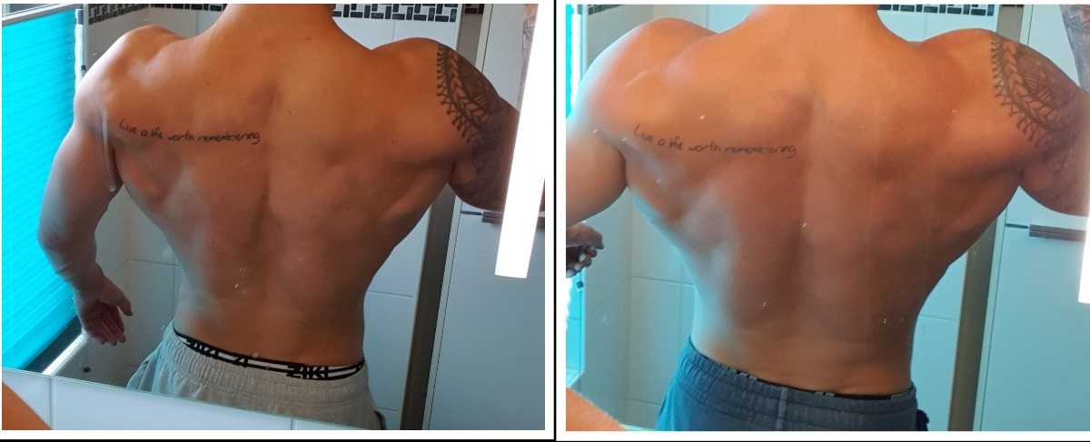 Net na de rugtraining wat foto's geschoten en kon het niet laten om ze te vergelijken met de startfoto's