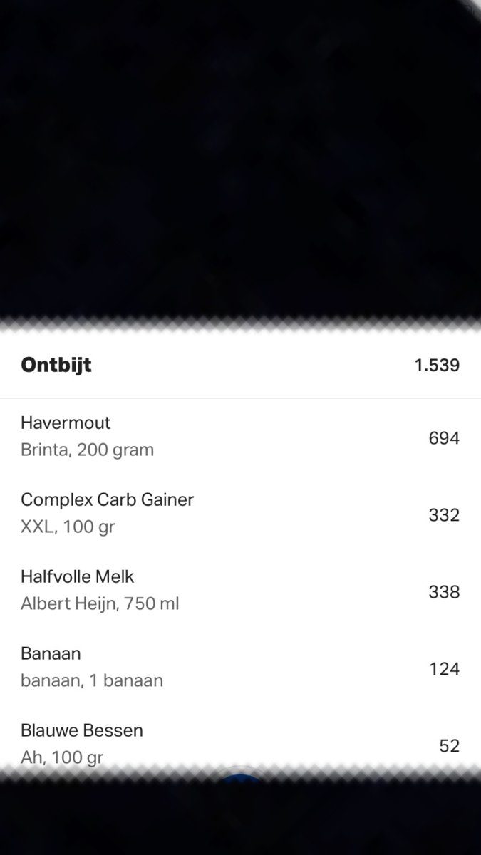 Nope. Ik heb nog een bakje rijst/kip/groente in de koelkast staan voor na leg day. Daarmee kom ik op 4000 cal voor vandaag.