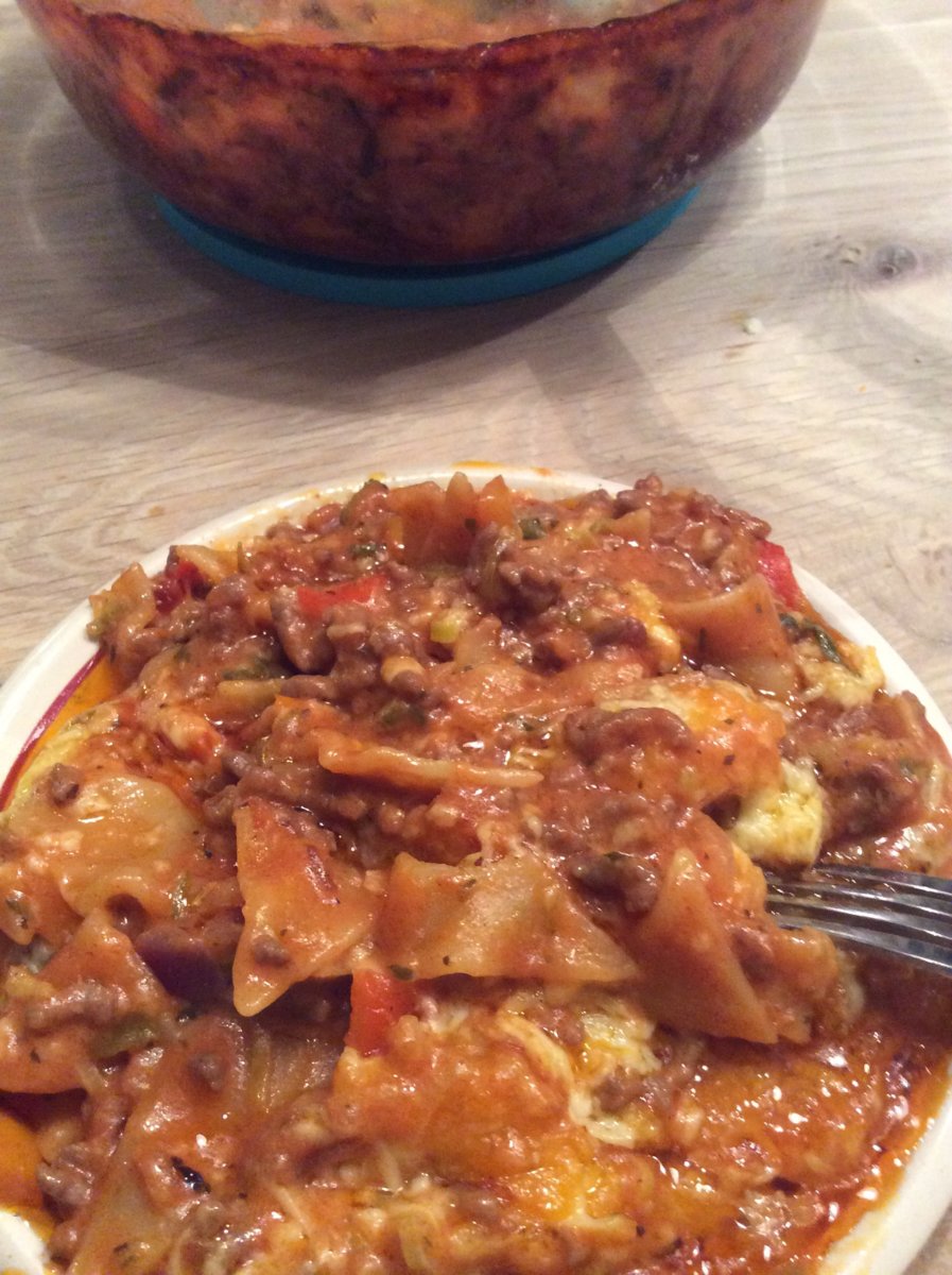 Dankjewel was heerlijk.Op verzoek van manlief lagsagne gemaakt, wel veel groente erdoor gedaan , rode ui, 2 paprika's en een prei en knoflook en extramager rundergehakt om zo de baklading kaas een beetje te compenseren.![]()