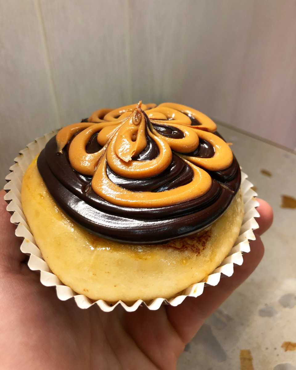 Btw, onder het laagje confituur ligt een laag pindakaas