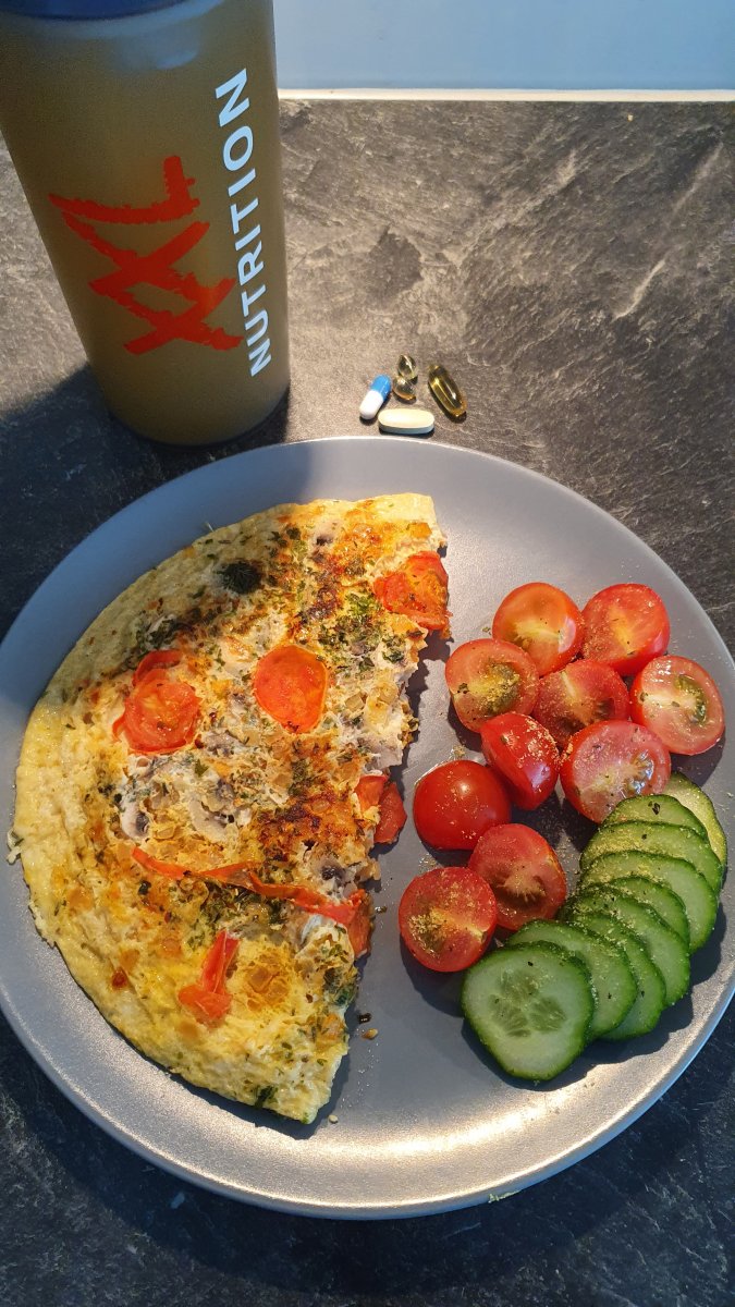 Jij hebt je lesje wel geleerd, je legt de groentjes er nu naast, dan mag je het van @Kathlinoo vast een salade noemen!Omelet bestaande uit: